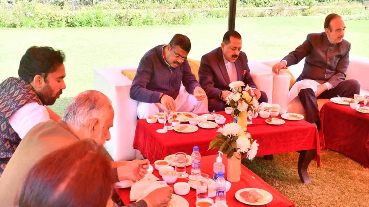 नई दिल्ली: केंद्रीय मंत्री जितेंद्र सिंह ने बुधवार को यहां अपने निवास पर राज्यसभा में विपक्ष के नेता गुलाम नबी आजाद और इस सदन में अपना कार्यकाल पूरा करने जा रहे जम्मू कश्मीर के अन्य सदस्यों को विदाई भोज दिया। अपना कार्यकाल पूरा करने जा रहे शमशेर सिंह मन्हास और मीर मोहम्मद फयाज के साथ इस मौके पर उच्च सदन के सदस्य एवं केंद्रीय मंत्री धमेंद्र प्रधान, गृह राज्यमंत्री जी किशन रेड्डी, जम्मू से लोकसभा के सदस्य जुगल किशोर शर्मा भी मौजूद थे।