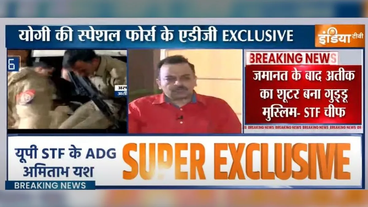 लखनऊ: अतीक अहमद और उसके भाई अहरफ अहमद की हत्या के बाद अब सभी की निगाहें शूटर गुड्डू मुस्लिम पर बनी हुई हैं। उमेश पाल हत्याकांड में वह आरोपी है और अभी तक फरार है। उत्तर प्रदेश पुलिस की STF टीम को उसकी तलाश है और उसे ढूढने के लिए कई जगह छापेमारी कर चुकी है। STF के चीफ और ADG अमिताभ यश ने आज इंडिया टीवी से बातचीत में गुड्डू मुस्लिम के बारे में कई बड़े खुलासे किए हैं। बता दें कि गुड्डू मुस्लिम वही है जिसका नाम मरने से पहले अतीक अहमद ने लिया था और उसके बाद उसे गोली मार दी गई थी।