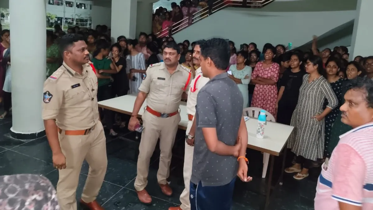 - पुलिस ने कहा कि छात्रों और कॉलेज स्टाफ की मौजूदगी में संदिग्धों के लैपटॉप, मोबाइल फोन और अन्य इलेक्ट्रॉनिक समान की भी जांच की। आरोपों की जांच के लिए एक विशेष टीम गठित की गई है। राज्य के मानव संसाधन विकास मंत्री नारा लोकेश ने भी इस कथित मामले की जांच के आदेश दिए।