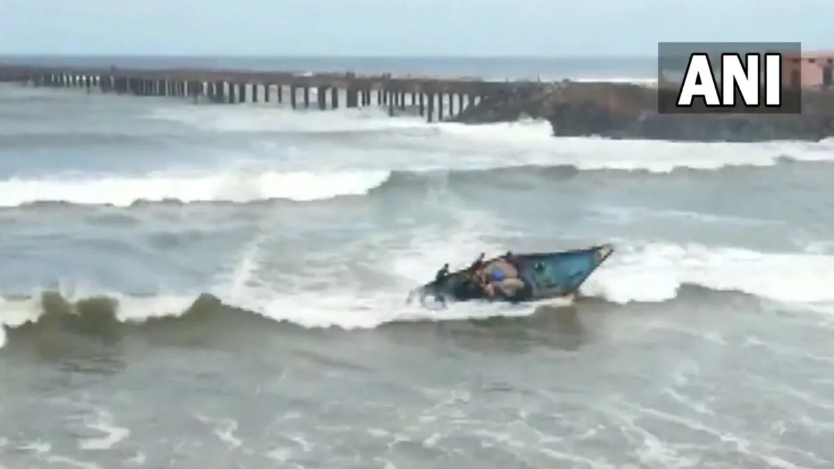 Cyclone Asani: चक्रवात असानी की वजह से समुद्र पूरी तरह से अशांत हैं। समुद्र में लंबी-लंबी लहरें उठ रही हैं ऐसे में ओडिशा के गंजम जिले में मछली पकड़ने गए मछुआरों की नाव पलटने का मामला सामने आया है। आपको बता दें कि ओडिशा के गंजम जिले में समुद्र में मछुआरों की नाव पलट गई। इस हादसे में मछुआरों का एक समूह बाल-बाल बच गया। सभी मछुआरे तैरने में कामयाब रहे और कोई हताहत नहीं हुआ। समाचार एजेंसी एएनआई ने हादसे का वीडियो शेयर किया है।