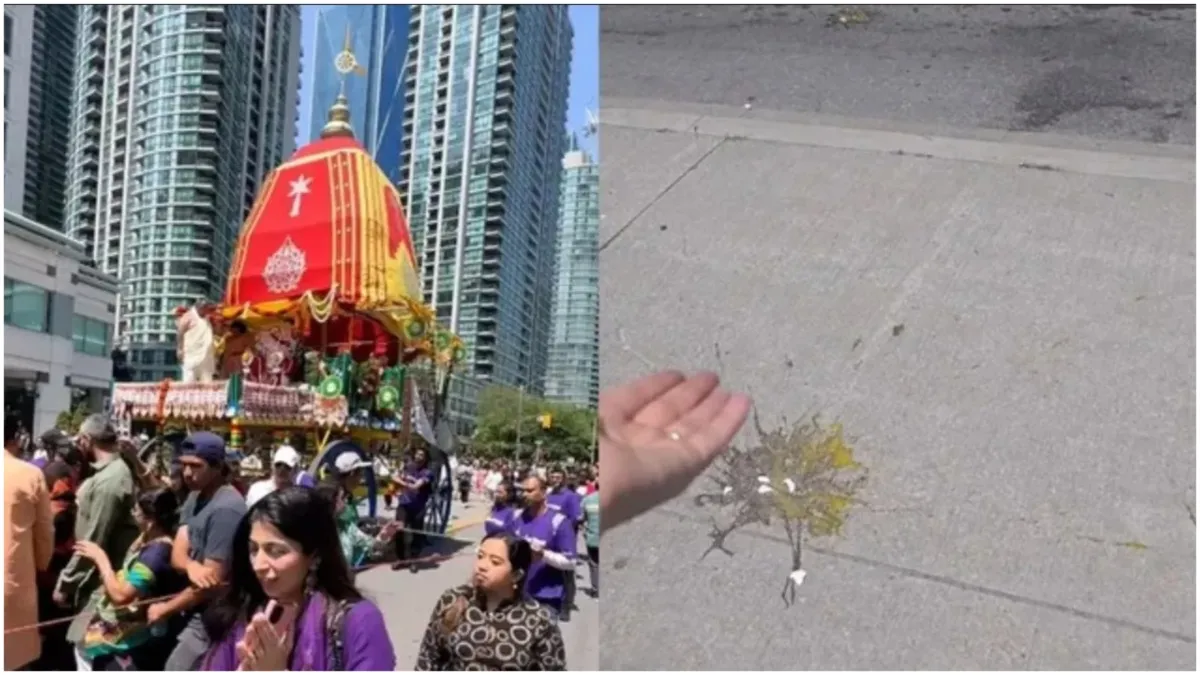 कनाडा के टोरंटों में 11 जुलाई को भगवान जगन्नाथ की रथयात्रा निकाली जा रही थी। इस दौरान इस रथ यात्रा में बाधा डालने की कोशिश की गई। दरअसल जिस वक्त ये रथयात्रा निकाली जा रही थी, उसी दौरान पास की ही बिल्डिंग से किसी ने अंडे फेंककर रथयात्रा को टारगेट करने की कोशिश की। बता दें कि फेंके गए अंडे भगवान जगन्नाथ के रथ के पास सड़क पर गिरे। टोरंटों में ही रहने वाली एक एनआरआई ने इस पूरे घटनाक्रम का वीडियो बनाया और कहा कि हमने रथ यात्रा नहीं रोकी, नफरत कभी भी विश्वास को नहीं हरा सकती है। रथयात्रा पर अंडे फेंके जाने का वीडियो सामने आने के बाद भारत सरकार ने कड़ी प्रतिक्रिया दी है।