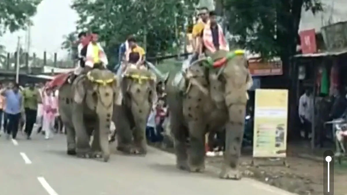 गुवाहाटी: असम के शिवसागर जिले में शुक्रवार को लोग उस समय हैरान रह गए जब उन्होंने हाथियों की एक जबरदस्त रेस देखी। इस शानदार रेस का आयोजन स्थानीय लोगों ने रोंगाली बिहू के मौके पर किया था। घटना के वायरल हुए वीडियो में देखा जा सकता है कि कुछ हाथी सड़क पर तेजी से दौड़ते चले जा रहे हैं और उनके साथ स्थानीय लोग भी दौड़ रहे हैं। कुछ लोग हाथियों की तस्वीरें और वीडियो लेने के लिए उनके साथ दौड़ लगाते देखे गए। हालांकि हाथियों की रफ्तार इतनी थी कि उनके साथ भागते-भागते लोगों का बुरा हाल हो गया।