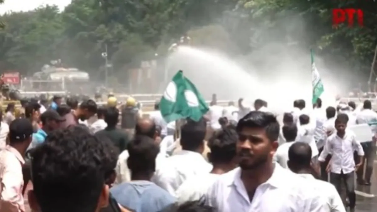 विरोध स्थल से सामने आए वीडियो में प्रदर्शनकारी बैरिकेड तोड़ने की कोशिश करते दिख रहे हैं, जिसके बाद पुलिस को भीड़ को तितर-बितर करने के लिए पानी की बौछारें छोड़नी पड़ीं। स्थिति को नियंत्रित करने के लिए राज्य पुलिस ने आंसू गैस के गोले भी दागे और प्रदर्शनकारियों पर पानी की बौछारें जारी रखीं।