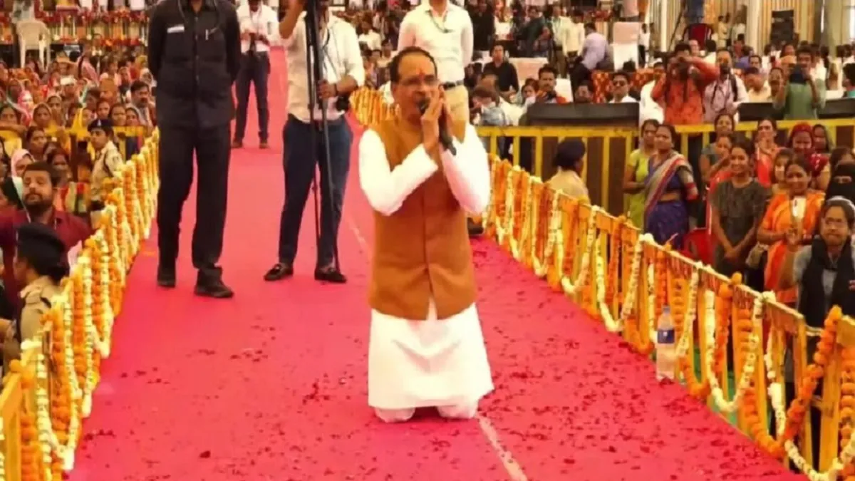 मध्य प्रदेश: लाखों की भीड़ में घुटनों पर क्यों बैठे CM शिवराज सिंह चौहान? यहां देखें VIDEO