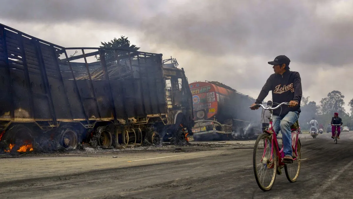 रिपोर्ट्स के मुताबिक, ट्रोंगलाओबी आवांग लेइकाई इलाके में संदिग्ध उग्रवादियों ने रात करीब 1 बजे एक घर पर हमला कर दिया। इस हमले में 5 साल के एक बच्चे और उसकी 5 महीने की बहन की सोते समय ही हत्या कर दी गई। इस घटना में उनकी मां गंभीर रूप से घायल हो गईं और उनका इलाज चल रहा है। घटना की जानकारी मिलने के बाद स्थानीय लोगों में भारी गुस्सा फैल गया। विरोध प्रदर्शन के दौरान लोगों ने कम से कम 3 ट्रकों में आग लगा दी और इम्फाल-टिडिम रोड को कई जगहों पर जाम कर दिया, जिससे यातायात प्रभावित हुआ और तनाव और बढ़ गया।