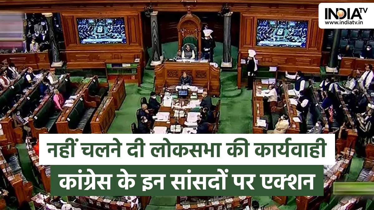 संसदीय कार्य मंत्री प्रह्लाद जोशी ने आसन से चारों कांग्रेस सांसदों के खिलाफ कार्यवाही करने का अनुरोध किया और इस संबंध में सदन में प्रस्ताव रखा। अग्रवाल ने इसके बाद सदन की कार्यवाही करीब 3:50 बजे दिनभर के लिए स्थगित कर दी। इससे पहले 2 बजे कार्यवाही शुरू होने पर शोर-शराबा करने वाले सदस्यों से अपने स्थान पर लौटने की अपील करते हुए लोकसभा अध्यक्ष ओम बिरला ने कहा, ‘‘मेरी सहृदयता का अलग अर्थ नहीं निकालें। 3 बजे के बाद मैं सदन में चर्चा करवाने के लिए तैयार हूं। सरकार चर्चा कराने को तैयार है।’’ उन्होंने कहा कि लेकिन यदि तख्तियां ही दिखानी हैं तो 3 बजे के बाद सदन के बाहर दिखाइएगा। बिरला ने आगे कहा कि 3 बजे के बाद तख्तियां और नारे सदन के बाहर ही दिखा पाएंगे। बिरला ने कहा, ‘‘सदन इस तरह नहीं चल सकता, ऐसी स्थिति सदन में नहीं रहने दूंगा।’’