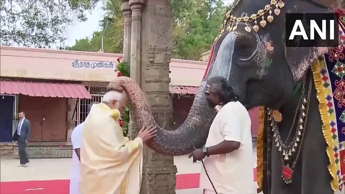 पीएम मोदी ने श्री रंगनाथस्वामी मंदिर में किए दर्शन, हाथी से आशीर्वाद लिया और सुनी कंबा रामायण