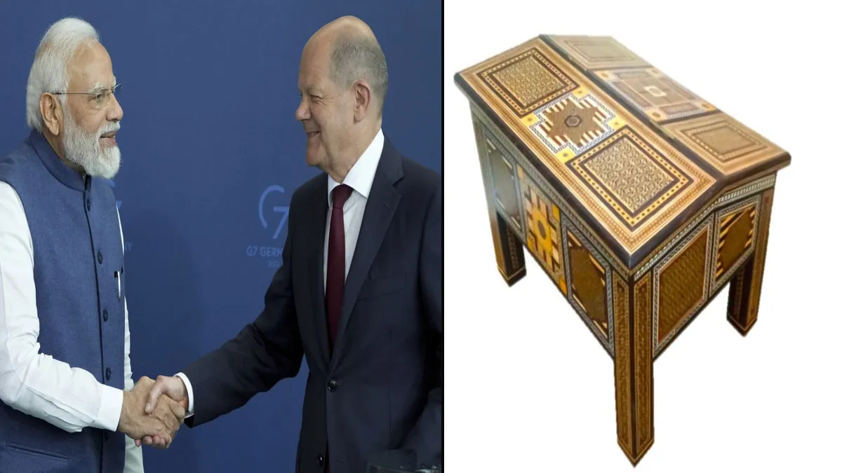 PM Modi’s gift to German Chancellor: प्रधानमंत्री नरेंद्र मोदी, जर्मन चांसलर ओलाफ़ शोल्ज के निमंत्रण पर जर्मनी के दौरे पर गए हैं। आज बर्लिन की चांसलरी यानी जर्मन सरकार के हेडक्वार्टर में प्रधानमंत्री का शानदार स्वागत किया गया। पीएम मोदी को गार्ड ऑफ ऑनर दिया गया। दोनों देशों के बीच डेलीगेशन लेवल की बातचीत से पहले प्रधानमंत्री मोदी और जर्मनी के चांसलर ओलाफ शोल्ज के बीच द्विपक्षीय वार्ता हुई। इस दौरान पीएम मोदी ने जर्मन चांसलर को एक खास तोहफा दिया। यह तोहफा है 'सेडली'। सेडली आज भी गुजरात के व्यापारियों द्वारा लिखने के टेबल के रूप में उपयोग होती है, इसे पारसी समुदाय के लोग अपने साथ भारत लाये थे।