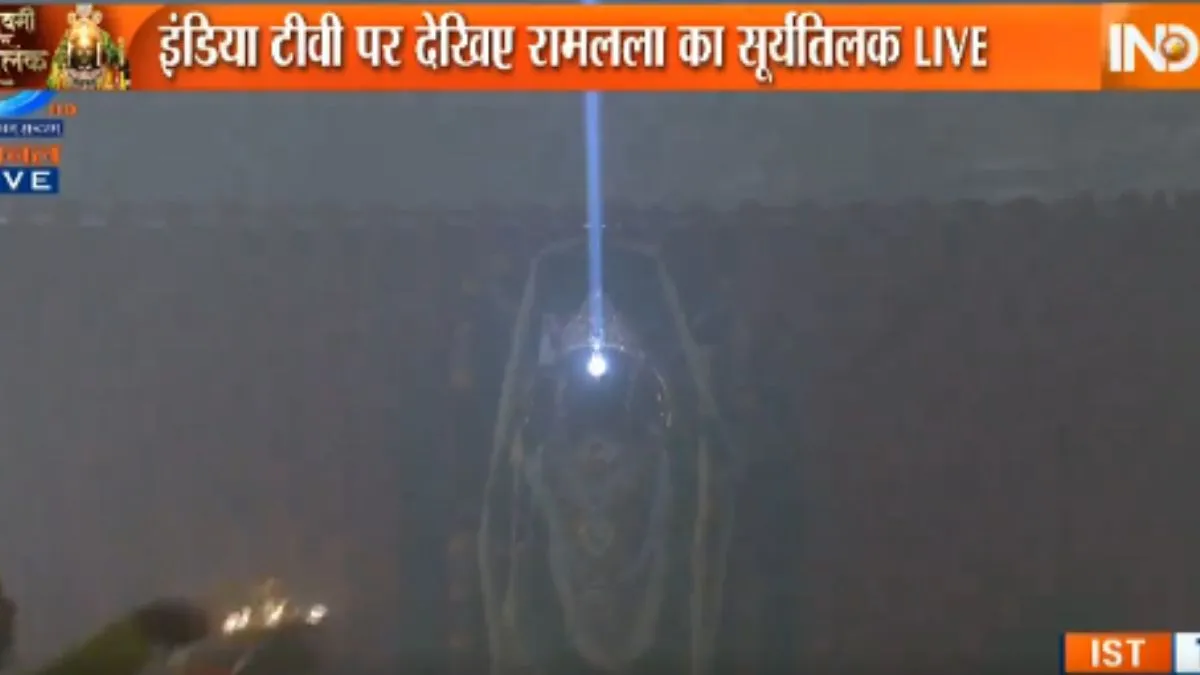 अयोध्या राममंदिर में रामलला का सूर्यतिलक शुरू हो चुका है। सूर्य की किरणे उनके माथे पर पहुंच रही हैं।