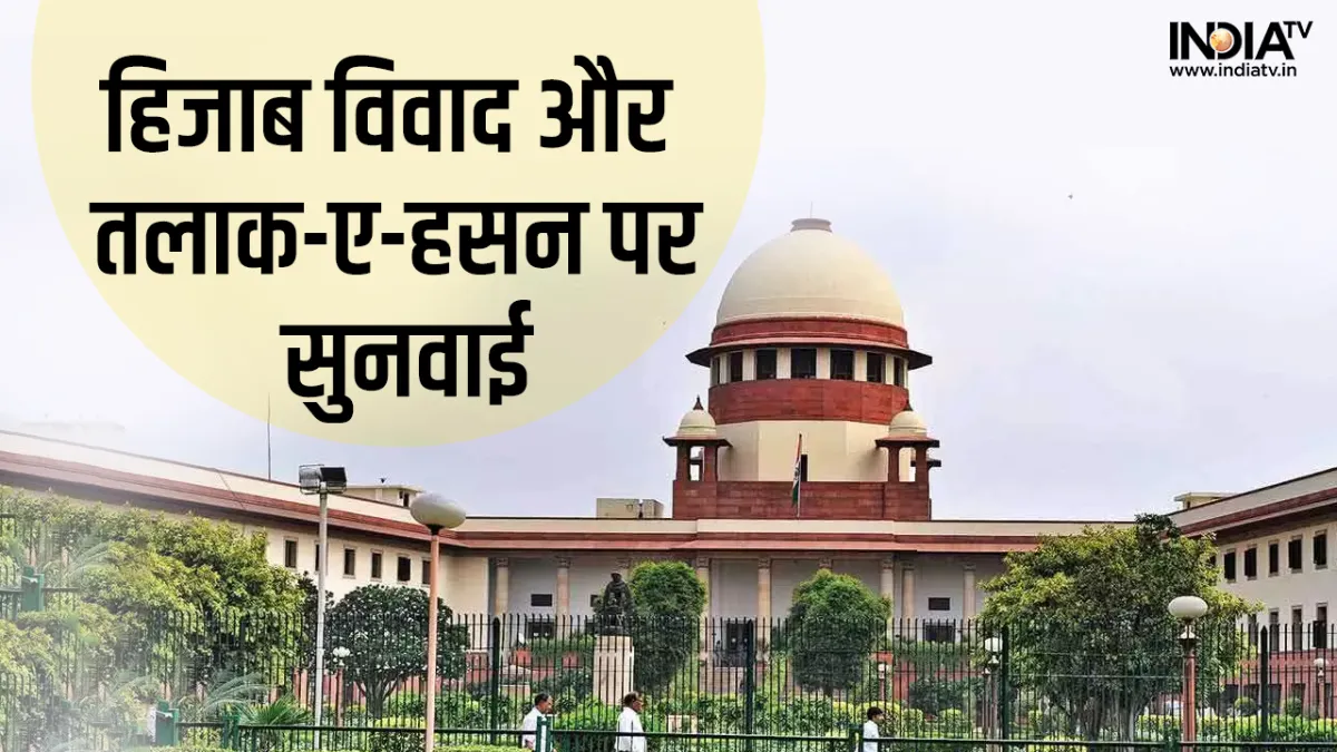 SC Hearing on Hijab and Talaq E Hasan: सुप्रीम कोर्ट में आज 2 बड़े मामलों को लेकर सुनवाई की जाएगी। पहला मामला हिजाब विवाद पर कर्नाटक हाईकोर्ट के फैसले से जुड़ा है, वहीं दूसरा मामला मुस्लिम पुरुषों को तलाक का एकतरफा अधिकार देने वाले तलाक-ए-हसन का है। हिजाब विवाद मामले में सुनवाई कर्नाटक हाईकोर्ट के 15 मार्च के फैसले के खिलाफ दायर याचिकाओं पर होगी। हाईकोर्ट के फैसले में कहा गया था कि मुस्लिम महिलाओं द्वारा हिजाब पहनना इस्लाम में आवश्यक धार्मिक प्रथा का हिस्सा नहीं है।