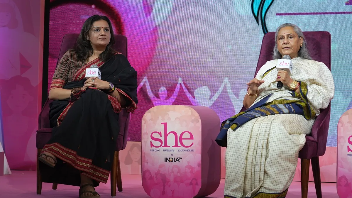 नई दिल्ली: इंडिया टीवी के 'She' Conclave में राज्यसभा सांसद जया बच्चन और प्रियंका चतुर्वेदी खास मेहमान थे। उन्होंने महिलाओं के मुद्दे पर खुलकर बात की। जया बच्चन ने अपने सिनेमा से संसद तक के सफर के बारे में बात की और बताया कि वह सेना में जाना चाहती थीं लेकिन उस समय सेना में महिलाओं की एंट्री नहीं थी। वहीं प्रियंका चतुर्वेदी ने भी बताया कि उन्होंने कभी नहीं सोचा था कि वह राजनीति में आएंगी।