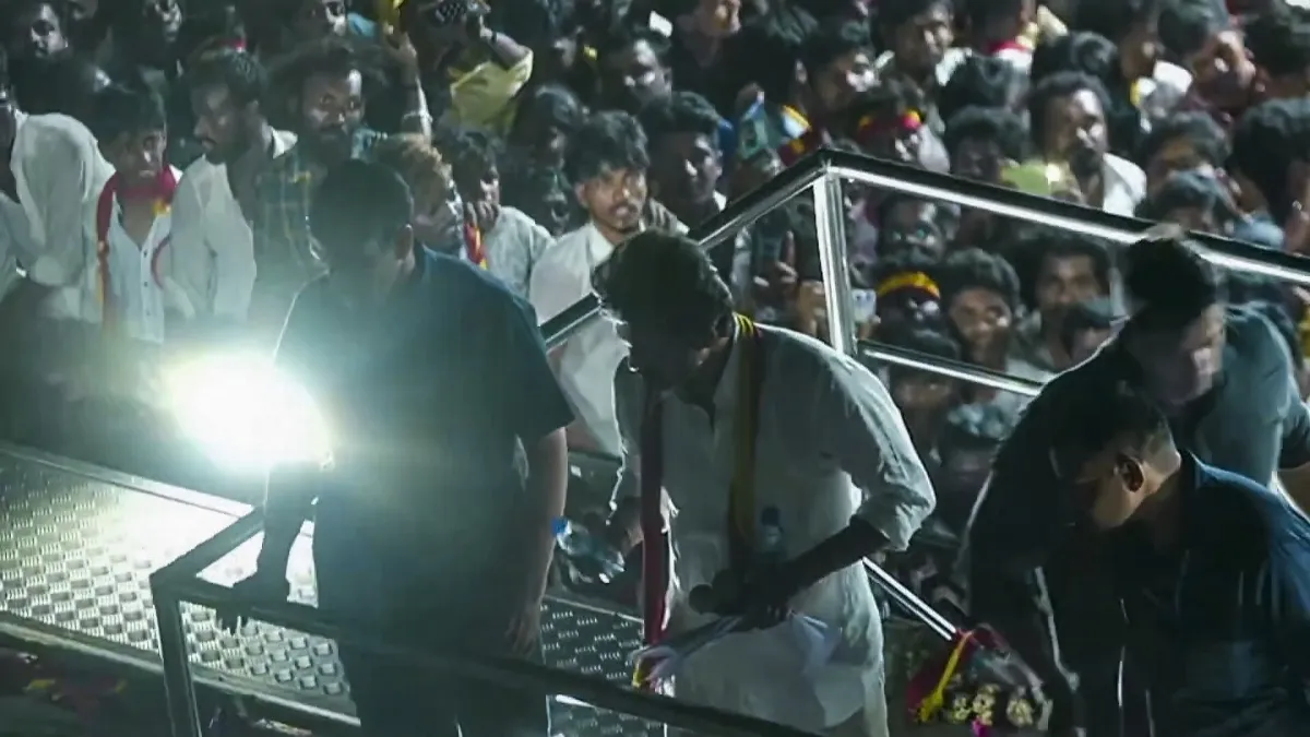 एक्टर से नेता बने विजय की करूर में आयोजित सभा में हजारों समर्थक जुटे थे। विजय मंच से भाषण दे रहे थे कि तभी भीड़ आगे बढ़ी और दम घुटने से कई लोग बेहोश हो गए और कई की जान चली गई।