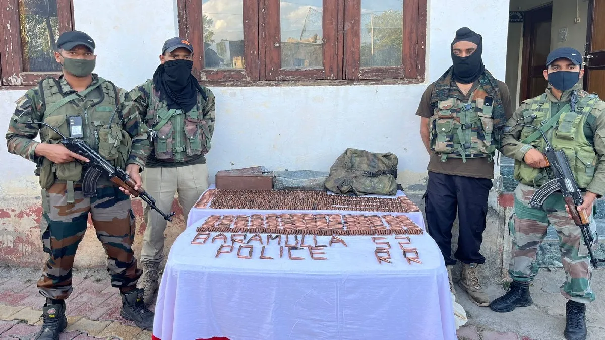 Terrorism In Jammu-Kashmir: जम्मू-कश्मीर के बारामूला जिले में गुरुवार को एक आतंकवादी ठिकाने का पता चलने के बाद भारी मात्रा में गोला-बारूद बरामद किया गया। पुलिस ने बताया कि एक विश्वसनीय स्रोत के विशेष सूचना पर बारामूला में पुलिस ने सेना के 52RR के साथ बारामूला के दुदबग-टीवाई शाह वन क्षेत्र में एक आतंकवादी ठिकाने का भंडाफोड़ किया और गोला-बारूद बरामद किया।' सुरक्षा बलों की एक संयुक्त टीम ने इलाके की घेराबंदी और तलाशी अभियान शुरू किया था और इस दौरान दो पेटी गोला-बारूद बरामद किया, जिसमें AK-47 के लिए 1,460 गोलियां और पेड़ के नीचे एक अंडरग्राउंड ठिकाने से एक बैग मिला है। बरामद सभी सामग्री को जांच के उद्देश्य से पुलिस हिरासत में ले लिया गया है।
