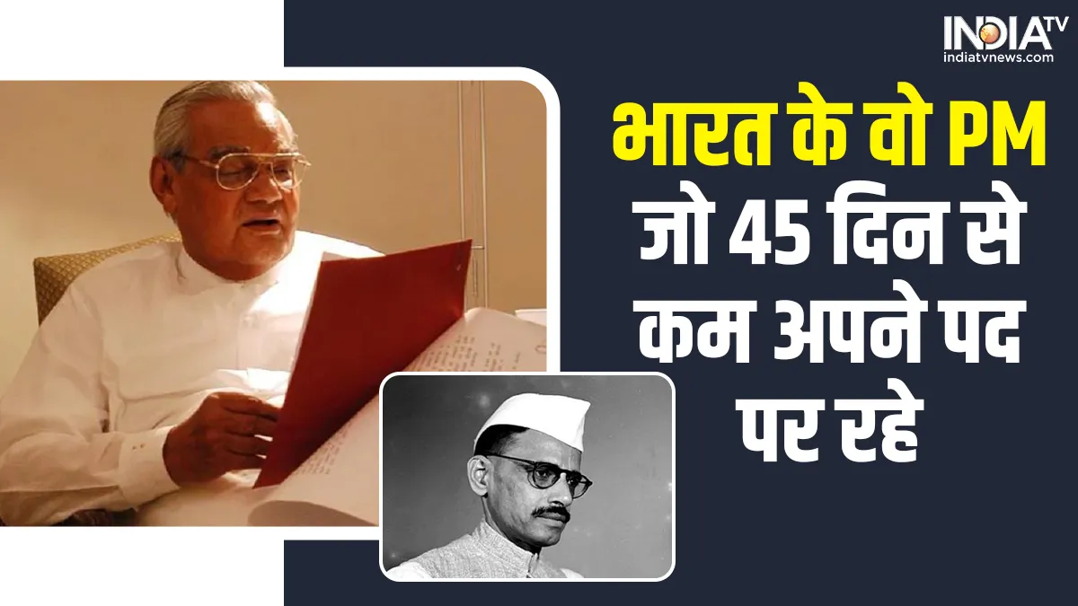 गुलाजारीलाल नंदा को अगर कार्यवाहक प्रधानमंत्री होने के कारण इस सूची से निकाल दिया जाए तो अटल बिहारी वाजपेयी एक मात्र ऐसे प्रधानमंत्री हैं जो 45 दिन से कम समय तक अपने पहले कार्यकाल में भारत के प्रधानमंत्री रहे। मात्र 13 दिन में ही वाजपेयी की सरकार गिर गई थी और उन्होंने उसी दिन इस्तीफा दे दिया था इसलिए उन्हें ज्यादातर मीडिया रिपोर्ट्स में 13 दिन का प्रधानमंत्री कहा जाता हैं।
