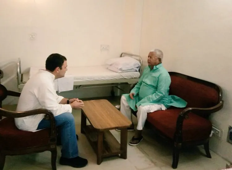 नई दिल्ली: कांग्रेस अध्यक्ष राहुल गांधी ने आज एम्स जाकर राजद सुप्रीमो लालू प्रसाद यादव से मुलाकात की और उनके स्वास्थ्य की जानकारी ली। कांग्रेस के एक सूत्र ने इस मुलाकात की पुष्टि की है।