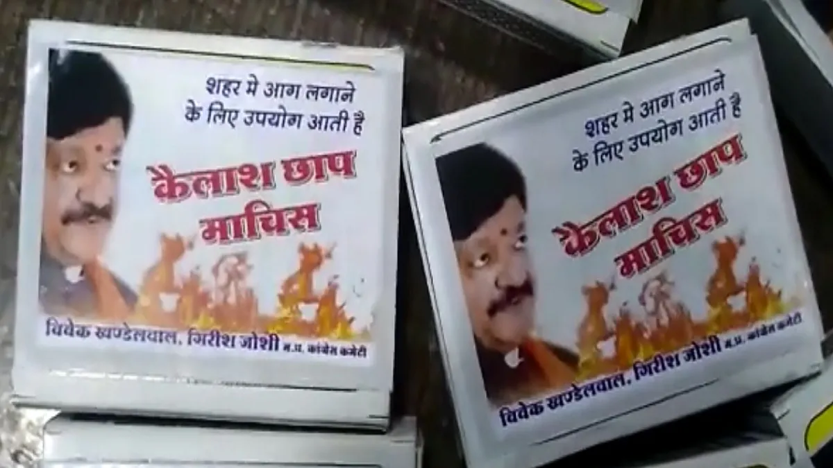 इसी बयाने के बाद अब सोशल मीडिया पर कैलाश छाप माचिस का वीडियो वायरल हो रहा है। माचिस पर कैलाश विजयवर्गीय की तस्वीर के ऊपर लिखा है ‘शहर में आग लगाने के लिए उपयोग आती है’। भाजपा नेताओं से जब इस वीडियो पर प्रतिक्रिया के लिएं सपर्क किया गया तो उन्होंने कांग्रेस पर निशाना साधा।