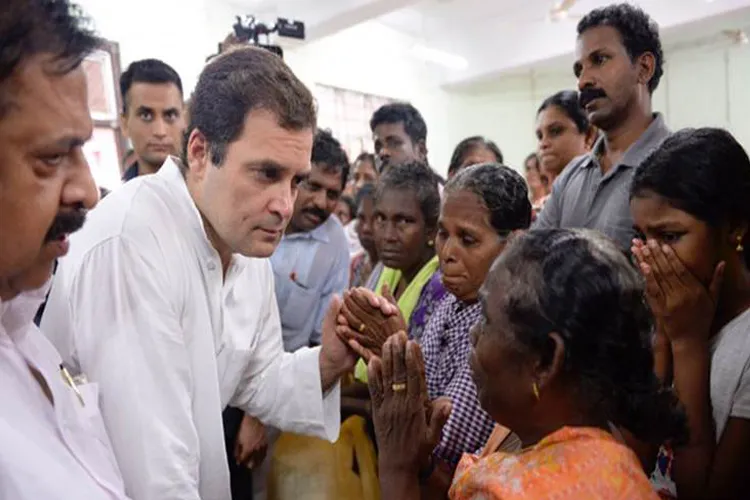 चेंगन्नूर (केरल): बाढ़ से तबाह हुए केरल में आपदा आने के बाद कांग्रेस अध्यक्ष राहुल गांधी ने आज चेंगन्नूर स्थित राहत शिविरों का दौरा किया और लोगों के दुख-दर्द को सुना। केरल में आयी बाढ़ अपने पीछे हर ओर भारी तबाही के निशान छोड़ गयी है। विदेश यात्रा से आज सुबह लौटे राहुल राज्य के दो दिवसीय दौरे पर तिरुवनंतपुरम पहुंचे। इसके बाद वह हेलीकॉप्टर से अलपुझा जिले में चेंगन्नूर गये।
