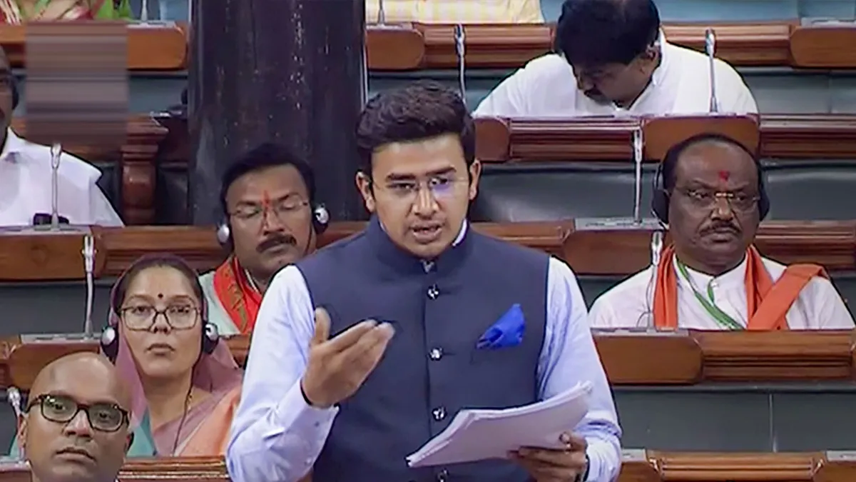 लोकसभा में उनके बयान के बाद विपक्ष के नेताओं ने तीखी प्रतिक्रिया दी। उनके इस बयान के बाद लोकसभा में जमकर हंगामा भी हुआ। सूर्या ने दशकों से लंबित समस्याओं को सुलझाने के लिए पीएम नरेंद्र मोदी की तारीफ की।