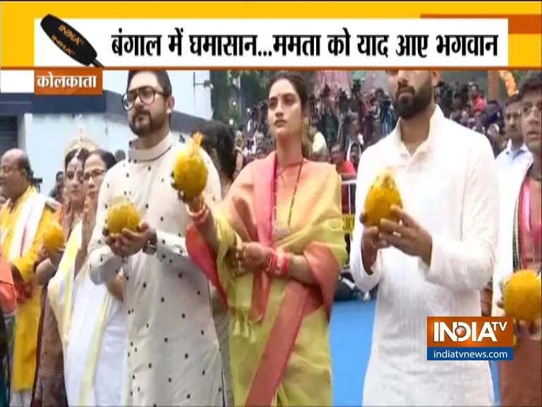 इस दौरान कट्टरपंथियों के निशाने पर रहीं टीएमसी सांसद नुसरत जहां ने आज धर्म के ठेकेदारों को करारा जवाब दिया। नुसरत जहां ने कोलकाता में आज जबर्दस्त तरीके से जय जगन्नाथ किया। नुसरत जहां ने ममता बनर्जी के साथ भगवान जगन्नाथ की आरती की, पूजा की और फिर रथ को भी खींचा।