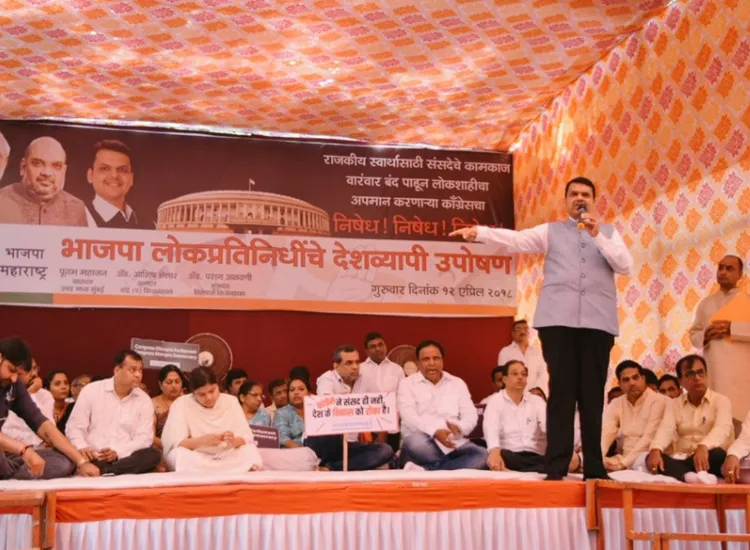 मुंबई: भाजपा सांसदों और विधायकों के साथ उपवास पर बैठे महाराष्ट्र के मुख्यमंत्री देवेंद्र फडणवीस ने विपक्ष पर निशाना साधते हुए कहा कि उनके पास प्रधानमंत्री नरेंद्र मोदी का कोई विकल्प नहीं है। हाल में संसद के बजट सत्र के दूसरे चरण में हंगामे की वजह से कोई कामकाज न होने को लेकर विपक्ष को घेरने के लिए आज देशभर में भाजपा नेताओं ने उपवास रखा।