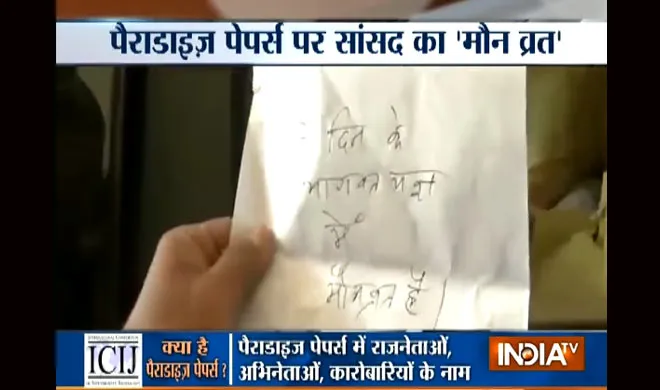 हाल ही में पैराडाइज़ पेपर लीक लिस्ट में नाम आने पर बीजेपी के राज्यसभा सांसद आरके सिन्हा पत्रकारों के सवालों से बचते नजर आए। पत्रकारों ने जब आरके सिन्हा से पैराडाइज़ पेपर लीक लिस्ट में नाम आने की बात पूछी तो उन्होंने पत्रकारों के सवालों को यह कहते हुए टाल दिया कि वह 7 दिन के मौनव्रत पर हैं। दरअसल हुआ यूं की जब एक पत्रकार ने उनसे इस मामले पर जवाब देने को कहा तो उन्होंने पत्रकार से पैन और कागज मांगा, जिस पर उन्होंने लिखा कि, '7 दिन के भागवत महायज्ञ में मौन व्रत है।' (पैराडाइज लीक: जयंत सिन्हा ने कहा- निजी लेन-देन नहीं किया, मंत्री बनने से पहले छोड़ी कंपनी)