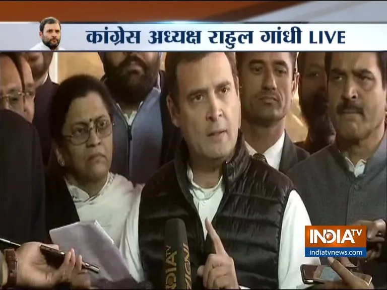 नई दिल्ली। संसद में राफेल विमान पर बहस और सरकार की तरफ से सफाई देने के बावजूद कांग्रेस अध्यक्ष राहुल गांधी पीछे हटने का नाम नहीं ले रहे हैं और अभी भी सरकार पर इस डील में घोटाले का आरोप लगा रहे हैं। सोमवार को राहुल गांधी ने संसद भवन में एक प्रेस कॉन्फ्रेंस की और फिर से अपने पुराने आरोप दोहराए और साथ में प्रधानमंत्री नरेंद्र मोदी को इस मुद्दे पर 15 मिनट बहस की चुनौती भी दे डाली।