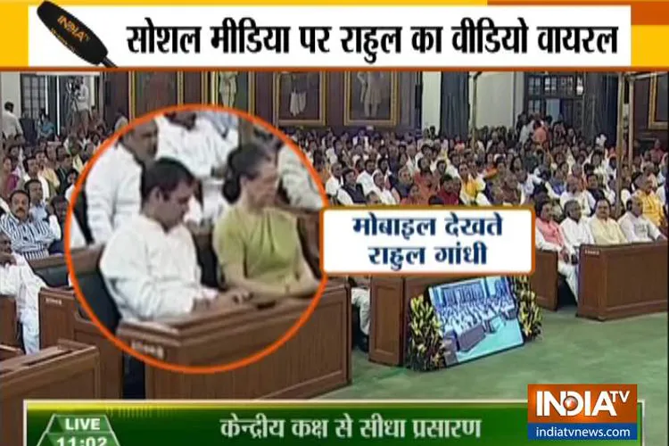 नई दिल्ली: राष्ट्रपति राम नाथ कोविंद आज जब संसद के संयुक्त सत्र में अपने अभिभाषण में केंद्र सरकार के अजेंडे को पेश करते हुए सभी दलों से तीन तलाक और हलाला जैसी कुप्रथाओं को खत्म करने के लिए सहयोग मांग रहे थे तब कांग्रेस अध्यक्ष राहुल गांधी मोबाइल देखने में व्यस्त रहे। सोशल मीडिया पर राहुल की ये तस्वीर वायरल हो गई है। वहीं जब सोनिया गांधी अभिभाषण पर मेज थपथपा रहीं थीं तब राहुल उन्हें रोकते हुए दिख रहे हैं।