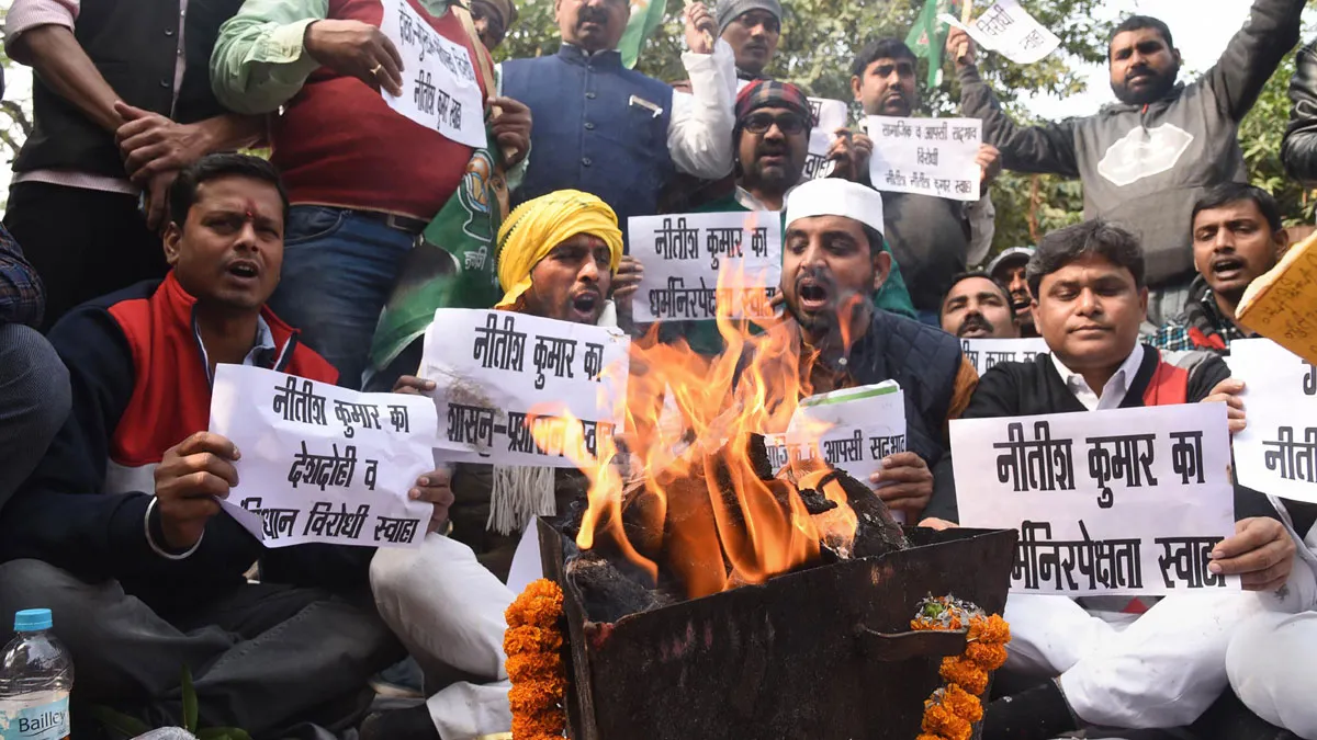 राजद की बिहार इकाई के अध्यक्ष कारी सोहेब ने कहा, "हमारा उद्देश्य नागरिकता (संशोधन) अधिनियम, 2019 पर जदयू के रुख पर अपना विरोध दर्ज कराना है। हमने जद (यू) के संविधान की एक प्रति भी जला दी क्योंकि उसने धर्मनिरपेक्षता के अपने मूल सिद्धांत के साथ समझौता किया।"