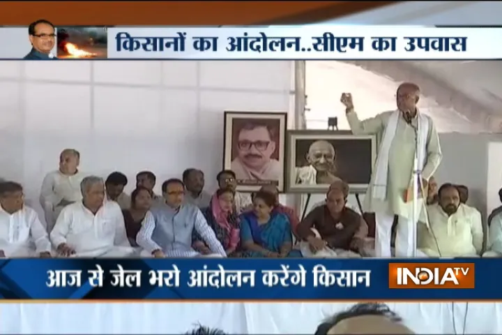 भोपाल: मध्य प्रदेश में चल रहे किसान आंदोलन के दसवें दिन आज प्रदेश के मुख्यमंत्री शिवराज सिंह चौहान यहां दशहरा मैदान में शांति बहाली के लिये अनिश्चितकालीन उपवास पर बैठ गये। उन्होंने किसानों को यहां समस्या के समाधान के लिये आने का आवाहन भी किया है। विपक्षी दल कांग्रेस ने इसे नौटंकी बताया। कृषि उत्पादों की बेहतर कीमत और रिण माफ करने सहित अन्य मांगों को लेकर प्रदेश में एक जून से किए जा रहे किसान आंदोलन का आज दसवां दिन है। किसानों ने आंदोलन के शुरू में ही इसे दस दिन तक चलाने की घोषणा की थी। यह किसान आंदोलन तब हिंसक हो गया जब मंदसौर जिले में छह जून को पुलिस गोलीबारी में प्रदर्शन कर रहे पांच किसानों की मौत हो गयी और छह किसान घायल हो गये। इस घटना के बाद पूरे पश्चिम मध्यप्रदेश में हिंसा फैल गयी थी। ये भी पढ़ें: कैसे होता है भारत में राष्ट्रपति चुनाव, किसका है पलड़ा भारी, पढ़िए...