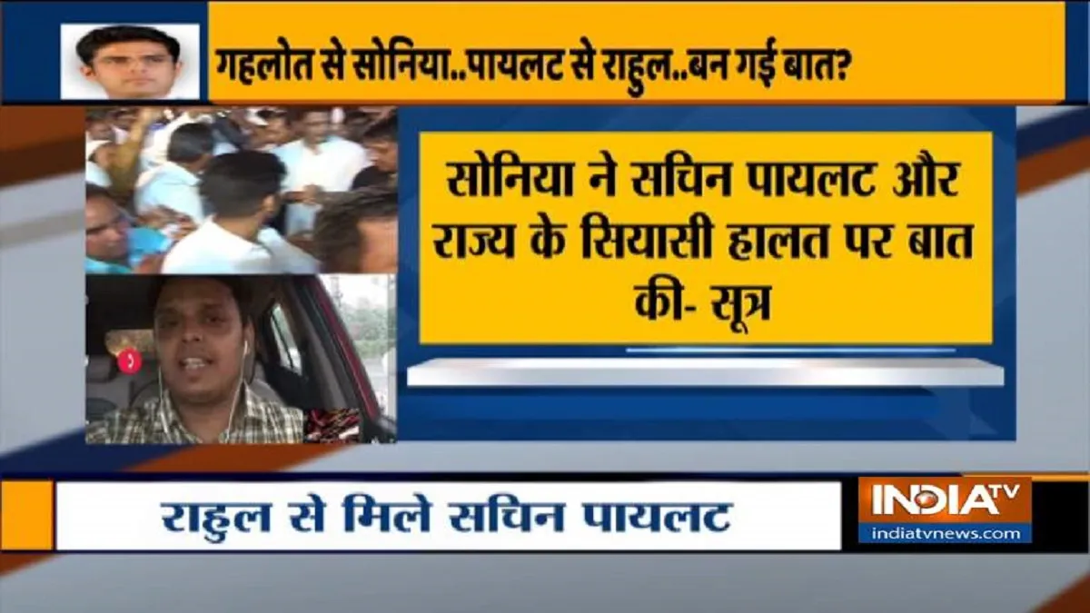 सूत्रों से मिली जानकारी के अनुसार, सोनिया गांधी और गहलोत के बीच राज्य के सियासी घटनाक्रम और सचिन पायलट को लेकर बातचीत हुई है। सूत्रों से मिली जानकारी के अनुसार, कांग्रेस के वेणुगोपाल पिछले 6 दिनों से जैसलमेर में थे, उन्होंने वहां हर एक विधायक से बात करके अपनी रिपोर्ट बनाई है, जो आलाकमान को दी गई है। इसके बाद ही राहुल औऱ पायलट के बीच बातचीत हुई है।