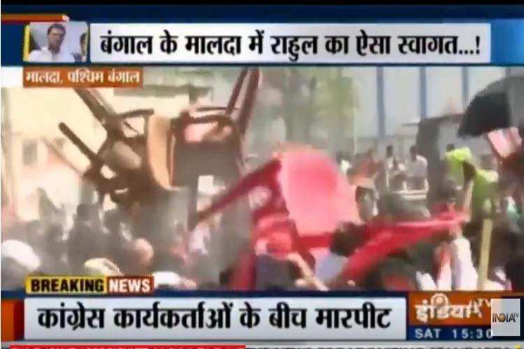 पार्टी सूत्रों ने बताया कि पुलिस और पार्टी नेताओं ने भीड़ को बमुश्किल शांत किया जिसके बाद हालात काबू में आए। राहुल गांधी चंचल रैली से पश्चिम बंगाल में पार्टी का चुनाव प्रचार अभियान आरंभ करेंगे।