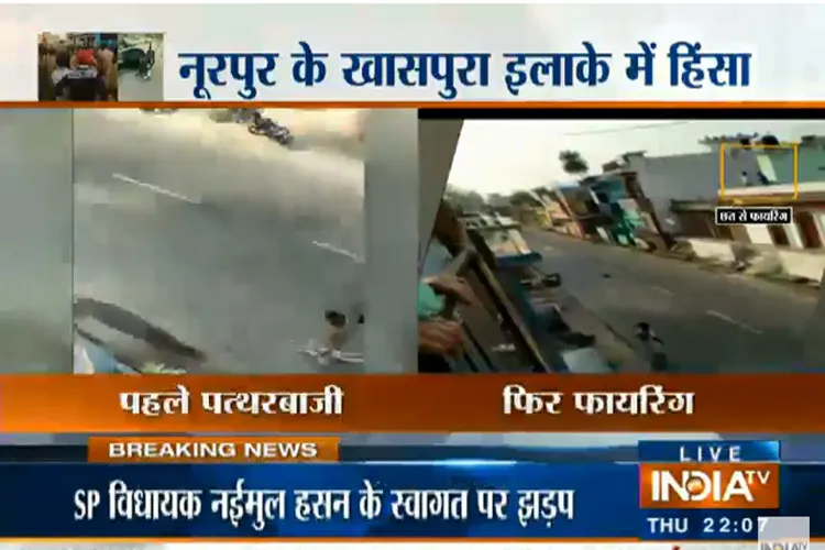 नई दिल्ली: बिजनौर के नूरपुर मे उपचुनाव के नतीजे आने के बाद जमकर हिंसा हुई है।आज दिन में उपचुनाव के नतीजे आए और दिन ढलते-ढलते फायरिंग और पथराव शुरू हो गया। हिंसा की घटना खासपुरा इलाके में हुई है। यहां विधानसभा उपचुनाव में समाजवादी पार्टी के प्रत्याशी नईमुल हसन की जीत हुई थी...और बीजेपी की अवनी सिंह हार गई थीं। इस जीत का जश्न मनाते हुए जब नईमुल हसन का काफिला गुजर रहा था तो कथित तौर पर उनके समर्थकों से बीजेपी नेता अवनी सिंह के समर्थकों और बीजेपी कार्यकर्ताओं की झड़प हो गई।
