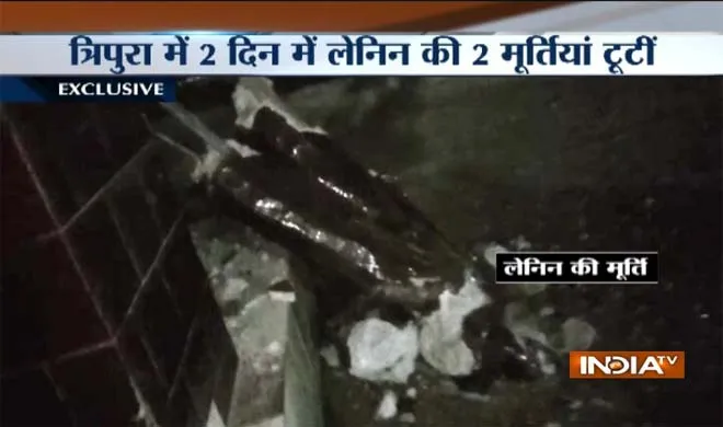 दक्षिण त्रिपुरा के सबरूम सब डिवीजन में लेनिन की एक और मूर्ति को तोड़ा गया। सीपीएम का दावा कि सबरूम में मोटर स्टैंड इलाके में आज दोपहर लेनिन की एक और मूर्ति को तोड़ दिया गया है। साउथ त्रिपुरा जिले के बेलोनिया सबडिविज़न में लेनिन की मूर्ति तोड़ने का विडियो सामने आया है। लेनिन की ये मूर्ति दक्षिण त्रिपुरा के बेलोनिया के मिर्जापुर इलाके में ईश्वर चंद्र विद्यासागर कॉलेज के कैंपस में लगी थी। सोशल मीडिया पर शेयर भी किए जा रहे इस वीडियो में प्रतिमा गिरने का जश्न मनाने वाले लोगों में कुछ लोग ऐसे हैं जिन्होंने बीजेपी की टोपी पहनी हुई है।