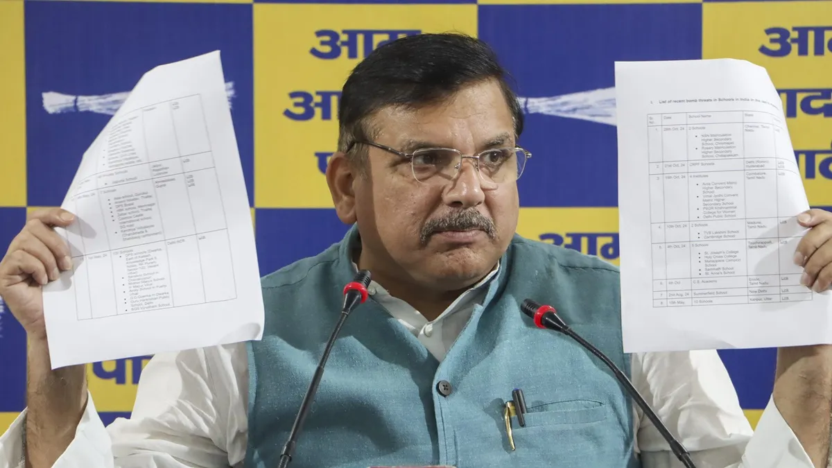 संजय सिंह ने कहा कि 27 अक्टूबर को एक साथ 50 विमानों को उड़ाने की धमकी दी गई। ये क्या हो रहा है इस देश में। ISCKON, तिरुपति, महाकालेश्वर, प्रेम मंदिर को उड़ाने की धमकी दी जा चुकी है। देश के अलग अलग हिस्सों में स्कूल्स को उड़ाने की धमकी दी गई हैं।