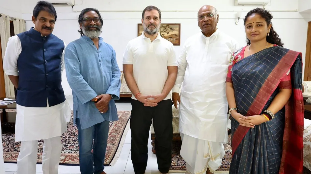 नई दिल्ली: झारखंड में आगामी विधानसभा चुनाव को लेकर राजनीतिक घमासान तेज हो गया है। एक तरफ जहां चंपई सोरेन ने झामुमो छोड़ कर भाजपा का साथ दिया है, वहीं अब हेमंत सोरेन भी आगे की राह पर निकल चुके हैं। झारखंड के मुख्यमंत्री हेमंत सोरेन ने आज नई दिल्ली में कांग्रेस अध्यक्ष मल्लिकार्जुन खरगे और लोकसभा में नेता प्रतिपक्ष राहुल गांधी से मुलाकात की। इस दौरान कांग्रेस महासचिव के सी वेणुगोपाल और हेमंत सोरेन की पत्नी कल्पना सोरेन भी मौजूद थीं। इस मुलाकात में झारखंड में होने वाले आगामी विधानसभा चुनाव पर चर्चा की गई। ये बैठक इसलिए भी खास मानी जा रही है कि झारखंड में विधानसभा चुनाव जल्द ही होने वाले हैं।