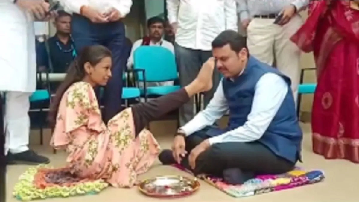 फडणवीस ने ट्विटर पर एक वीडियो पोस्ट किया है, जिसमें वह एक बच्ची से टीका लगवाते हुए दिख रहे हैं। लेकिन ये कोई सामान्य बच्ची नहीं है बल्कि दिव्यांग है। इसीलिए बच्ची उन्हें अपने पैर के अंगूठे से टीका लगाती है और पैर से ही आरती भी उतारती है। डिप्टी सीएम भी हाथ जोड़कर इस बच्ची की हिम्मत को सलाम करते हैं।