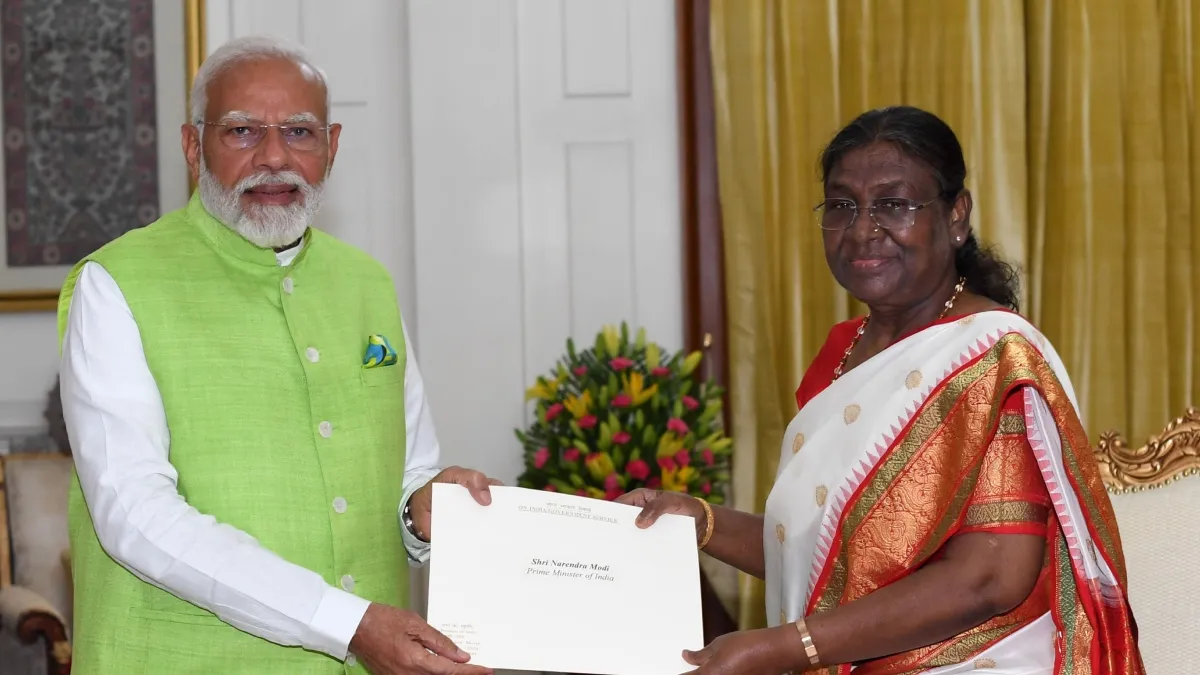 लोकसभा चुनाव 2024 के परिणाम सामने आ चुके हैं। एनडीए गठबंधन को इस चुनाव में बहुमत मिला है जिसके बाद तय हो गया है कि नरेंद्र मोदी एक बार फिर से प्रधानमंत्री पद को संभालेंगे। अब ताजा जानकारी के मुताबिक, पीएम नरेंद्र मोदी राष्ट्रपति भवन पहुंच गए हैं। यहां पीएम मोदी ने राष्ट्रपति द्रौपदी मुर्मू से मुलाकात कर केंद्रीय मंत्रिमंडल और 17वीं लोकसभा को भंग करने की सिफारिश की जिसके बाद नई सरकार बनाने का दावा पेश किया जाएगा।