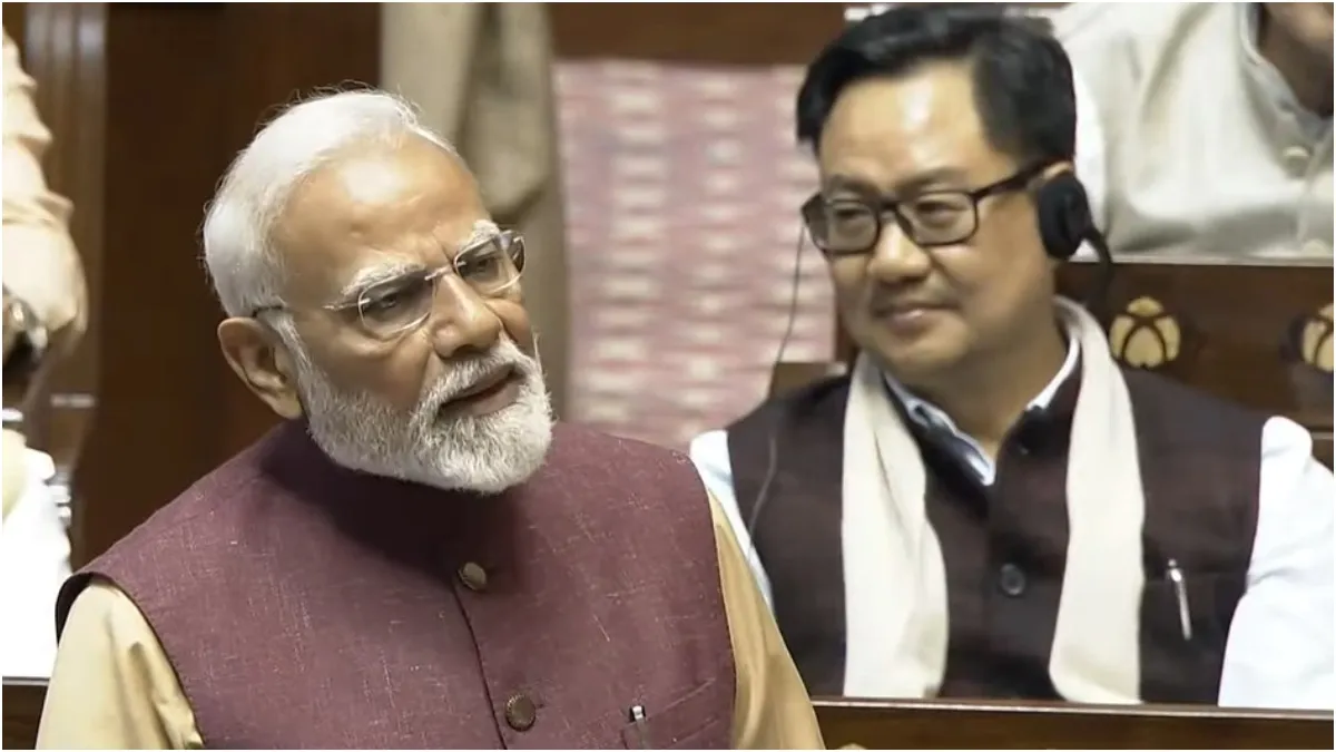भारत के प्रधानमंत्री नरेन्द्र मोदी ने गुरुवार को राज्यसभा में राष्ट्रपति के अभिभाषण पर धन्यवाद प्रस्ताव पर जारी चर्चा का जवाब दिया है। अपने संबोधन में पीएम मोदी ने कांग्रेस पार्टी और अन्य विपक्षी दलों पर जमकर हमला बोला है। पीएम मोदी ने ये तक कह दिया है कि कांग्रेस पार्टी को आज मजबूरन ‘जय भीम’ बोलना पड़ रहा है। आइए जानते हैं राज्यसभा में प्रधानमंत्री नरेंद्र मोदी के 10 प्रमुख बयानों के बारे में।