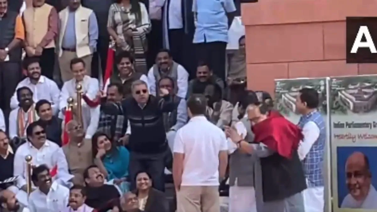 मिली जानकारी के अनुसार, सांसद कल्याण बनर्जी ने संसद परिसर में राज्यसभा के सभापति जगदीप धनखड़ का मजाक उड़ाया। बनर्जी ने मंगलवार को कांग्रेस नेता राहुल गांधी समेत कई विपक्षी सांसदों की मौजूदगी में संसद की सीढ़ियों पर विरोध प्रदर्शन के दौरान धनखड़ का मजाक उड़ाया। मौके पर कांग्रेस के पूर्व अध्यक्ष राहुल गांधी भी खड़े थे और वह बनर्जी द्वारा धनखड़ की नकल किए जाने का मोबाइल फोन से वीडियो बनाते देखे गए। इस दौरान आरजेडी सांसद मनोज झा समेत कई सांसद ताली बजाते नजर आए।