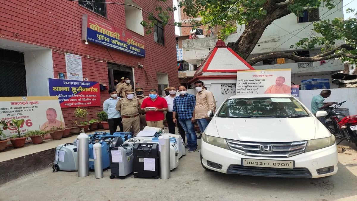 लखनऊ (उप्र): राजधानी लखनऊ में महामारी के बीच ऑक्सिजन सिलेंडर की कालाबाजारी और मनमाने पैसे वसूलने का सिलसिला रुकने का नाम नहीं ले रही है, जिसके चलते लखनऊ पुलिस भी मामले को गंभीरता से लेते हुए ऑक्सिजन सिलिंडर की कालाबाजारी करने वालों पर नकेल कसने की पुरजोर कोशिश करती हुई नजर आ रही है। लखनऊ में आक्सीजन सिलेंडर और ऑक्सीजन कंसंट्रेटर को ज्यादा किराए पर देने वाले शख्स को गिरफ्तार किया गया है। सुभाष नाम का ये शख्स ऑक्सीजन कंसंट्रेटर का हफ्ते में 30 से 40 हजार रुपये किराया वसूलता और ऑक्सीजन सिलेंडर 30 से 35 हजार में बेच देता था। पुलिस के मुताबिक अभी तक उसने 30 आक्सीजन कंसंट्रेटर किराए पर दिए है।
