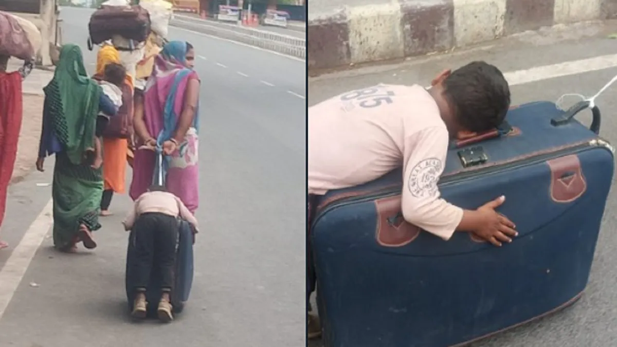 नया झकझोर देने वाला मामला झांसी से सामने आ रहा है। झांसी की एक मार्मिक तस्वीर और वीडियो सोशल मीडिया पर तेजी से वायरल हो रहा है। दरअसल, झांसी में एक प्रवासी मजदूर महिला अपने बच्चे को लेकर अपने गृह जनपद को निकल पड़ी और रास्ते में बच्चा थककर ट्रॉली बैग में लटककर सो गया।