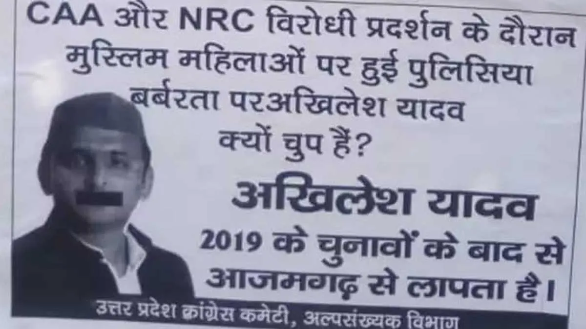 इन पोस्टरों पर क्षेत्रीय सांसद अखिलेश यादव की फोटो लगाई गई हैं जिसके मुंह पर पट्टी लगाई गई है। कांग्रेस के अल्पसंख्यक प्रकोष्ठ के नेता नदीम का कहना है कि मुसलमानों के रहनुमा होने का दावा करने और उनके 80 फीसद वोट लेने वाले अखिलेश यादव आजमगढ़ से सांसद हैं। उन्होने कहा कि इसके बावजूद वह महिलाओं पर हुए अत्याचार के खिलाफ केवल ट्वीट कर रहे हैं। नदीम ने कहा कि इससे काम नहीं चलने वाला है। पोस्टर में कांग्रेस ने सवाल किया है कि CAA और NRC विरोधी प्रदर्शन के दौरान बिलरियागंज में मुस्लिम महिलाओें पर पुलिसिया बर्बरता पर अखिलेश यादव यादव चुप क्यों हैं।