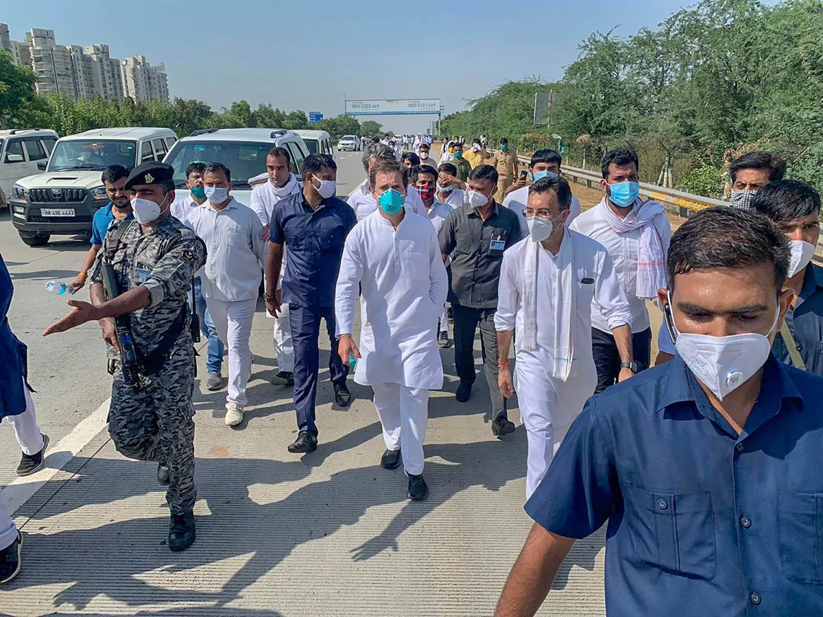 राहुल गांधी ने मीडिया से बातचीत में कहा, "अभी पुलिस वालों ने मुझे धकेल के लाठी मारकर गिराया ठीक है, मैं कुछ नहीं कह रहा हूं, कोई प्रॉब्लम नहीं। इस हिंदुस्तान में क्या RSS और BJP के लोग ही चल सकते हैं? क्या आम आदमी नहीं चल सकता? क्या इस देश में नरेंद्र मोदी ही पैदल जा सकते हैं?" नोएडा ADCP रणविजय सिंह ने बताया कि यहां महामारी अधिनियम का उल्लंघन हो रहा है। माननीय हाई कोर्ट की अवमानना हो रही है। अभी हम इनको यहां से आगे नहीं जाने देंगे।