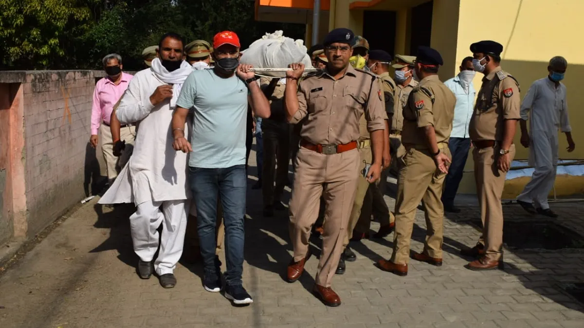 बिजनौर (उत्तर प्रदेश): जिला बिजनौर के नजीबाबाद थाने में तैनात SI गजेंद्र सिंह राणा की सोमवार को सड़क हादसे में दर्दनाक मौत हो गई। हादसा तब हुआ जब तेज रफ्तार एक ट्रैक्टर ट्रॉली ने सामने से दरोगा की कार में टक्कर मार दी। दरोगा के शव को पोस्टमार्टम के लिए भेजा गया, जहां बिजनौर के पुलिस अधीक्षक संजीव त्यागी पहुंचे और उनके शव को कंधा देकर भावभीनी श्रद्धांजलि दी।