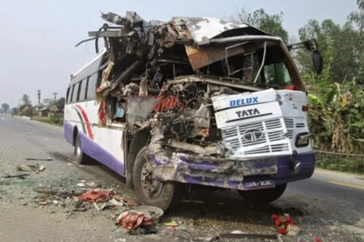 अलीगढ़: उत्तर प्रदेश के अलीगढ़ जिले के मडराक थाना क्षेत्र में टोल प्लाजा से आगे कोठिया मोड़ पर बारातियों से भरी बस की सामने से आ रही मिनी बस से टक्कर हो गई। इस हादसे में 11 लोगों की मौत हो गई। करीब दो दर्जन लोग घायल बताए जा रहे हैं। बस अलीगढ़ से फिरोजाबाद जा रही थी। सूचना मिलने पर पहुंची पुलिस ने लोगों की मदद से घायलों को जिला अस्पताल में भर्ती करवाया।