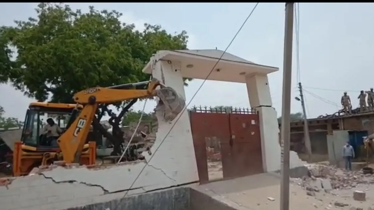 पुलिसकर्मियों के हत्यारे विकास दुबे की जेसीबी से ढहा दिया उसका मकान, महंगी गाड़ियां भी तोड़ी