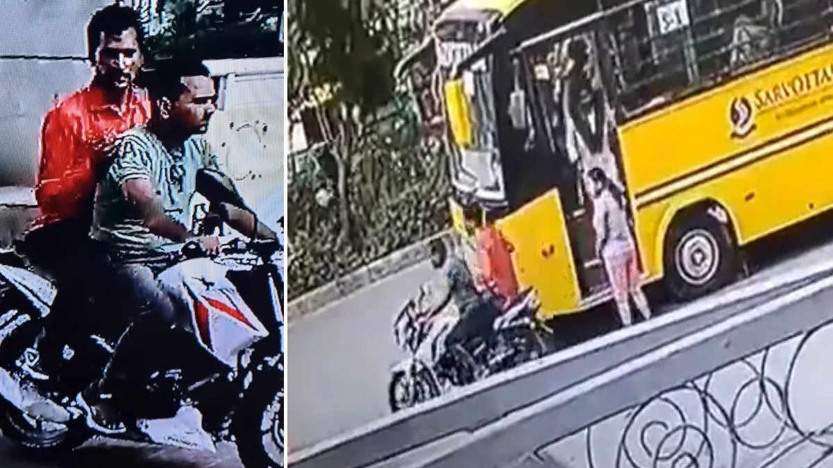 वारदात शुक्रवार दोपहर 3 बजे की है। घटना का जो वीडियो सामने आया है उसमें दिख रहा है कि एक महिला सोसाइटी के गेट के बाहर अपने बच्चे की स्कूल बस का इंतजार कर रही है। स्कूल बस आती देख जैसे ही वह बच्चे को लेने के लिए जाती है तभी पीछे से घात लगाए हुए 2 बाइक सवार उसके पास आते हैं। महिला कुछ समझ पाती उससे पहले दोनों बदमाश महिला के गले से चेन छीनकर भाग जाते है। घटना के बाद महिला बदमाशों के पीछे भागती है लेकिन दोनों फरार हो जाते हैं।