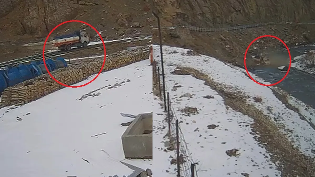 बर्फबारी के बीच पांड्रास वॉर मेमोरियल के पास एक सड़क हादसा हुआ है। जहां एक तेज रफ्तर ट्रक सड़क से फिसल कर नदी में जा गिरा। इस हादसे में ड्राइवर घायल हो गया। ये हादसा बर्फबारी के कारण सड़कों में फिसलन के चलते हुआ है। रविवार को द्रास में बर्फबारी हुई थी। यह हादसा CCTV कैमरे में भी कैद हो गया है।