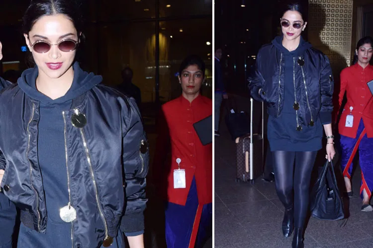 एयरपोर्ट पर एक बार फिर ब्लैक लुक में कहर बरपाती नजर आईं दीपिका पादुकोण, देखें तस्वीरें
