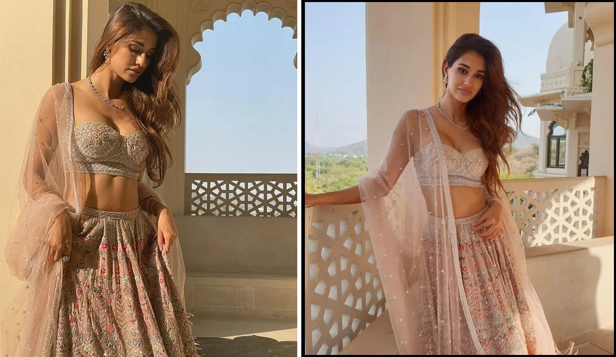 दिशा ने अपने इंस्टाग्राम अकाउंट पर इन तस्वीरों को शेयर किया। दिशा पेस्टल पिंक कलर के लहंगे में खूबसूरत लग रही हैं। जिसमें एंब्राइड्री किया गया है। इस लुक के साथ दिशा ने ऑफ शोल्डर ब्लाउज के साथ नेट दुपट्टा कैरी किया।